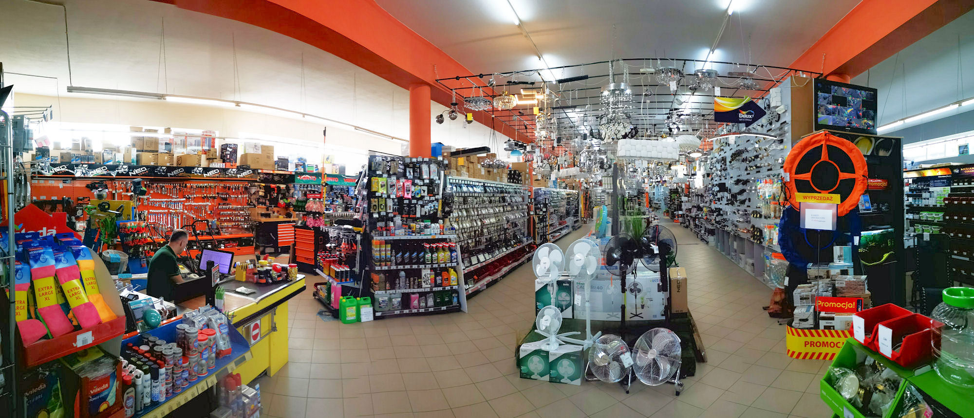W naszym sklepie mogą państwo nabyć wszelakie rodzaje farb: emulsyjne, chlorokauczukowe, akrylowe, dachowe oraz wszystkie akcesoria malarskie. Zapraszamy również po kompletną odzież ochronną: obuwie, półbuty, trzewiki robocze, spodnie, bluzy robocze, ubrania odblaskowe, BHP. Posiadamy wszelakie narzędzia i elektronarzędzia, te profesionalne jak i te amatorskie. W ofercie baterie zlewowe, brodzikowe, natryskowe oraz markowe produkty polskiej produkcji w postaci szafek łazienkowych. Prace ogrodowe z nami nie są straszne. Nawóz, ziemia, donice, kosiarki czy narzędzia? Wszystko możecie Państwo nabyć za jednym zamachem. Bogaty wybór tapet (papierowe, fizelinowe) oraz piękne fototapety niemieckiej marki KOMAR i polskiej produkcji MURANDO. Akcesoria kuchenne mieszczą się w dalszej części sklepu.