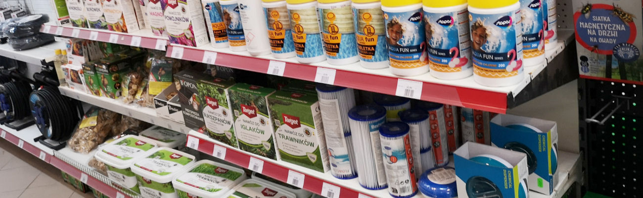 Posiadamy: kosiarki, ziemię, donice, nawóz, węże ogrodowe, preparaty do ochrony roślin oraz drewna, lakierobejce, impregnaty, lakiery, kłódki, szpadle, łopaty, spryskiwacze, fartuchy, grill i akcesoria grillowe, kosze na śmieci, miotły, konewki, meble ogrodowe oraz inne.
